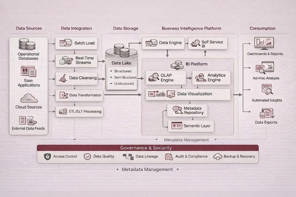 If leadership expects BI to stand up under board questions and audits, architecture cannot remain implicit.