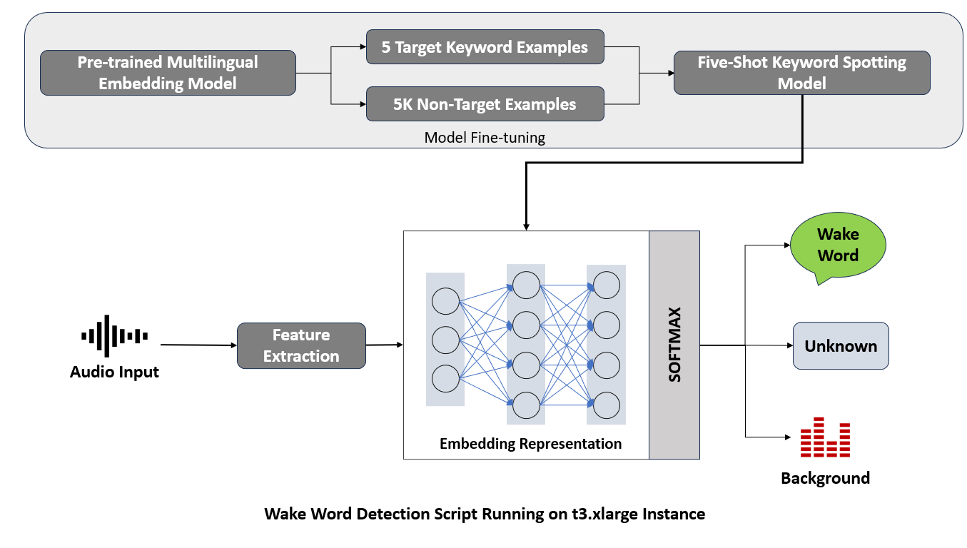 - The softmax layer identifies the custom wake word and classifies it as the target word.