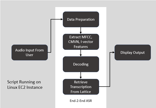 - The Automatic Speech Recognition script is built using the Librispeech recipe from Kaldi, an acoustic model, and a language model.